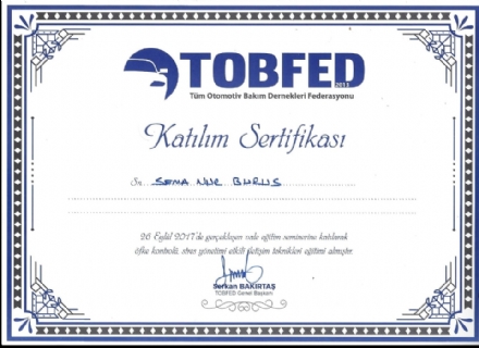 TOVDER KATILIM SERTİFİKASI